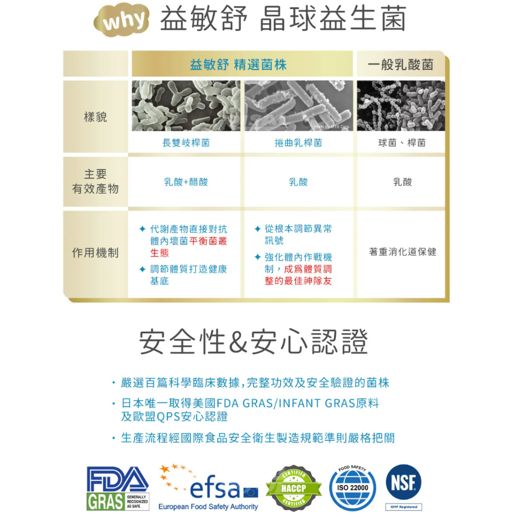 - 嚴選日本研發雙護益菌,通過美國嬰幼兒Infant GRAS/GRAS雙認證、歐盟安全認證菌株(QPS)。